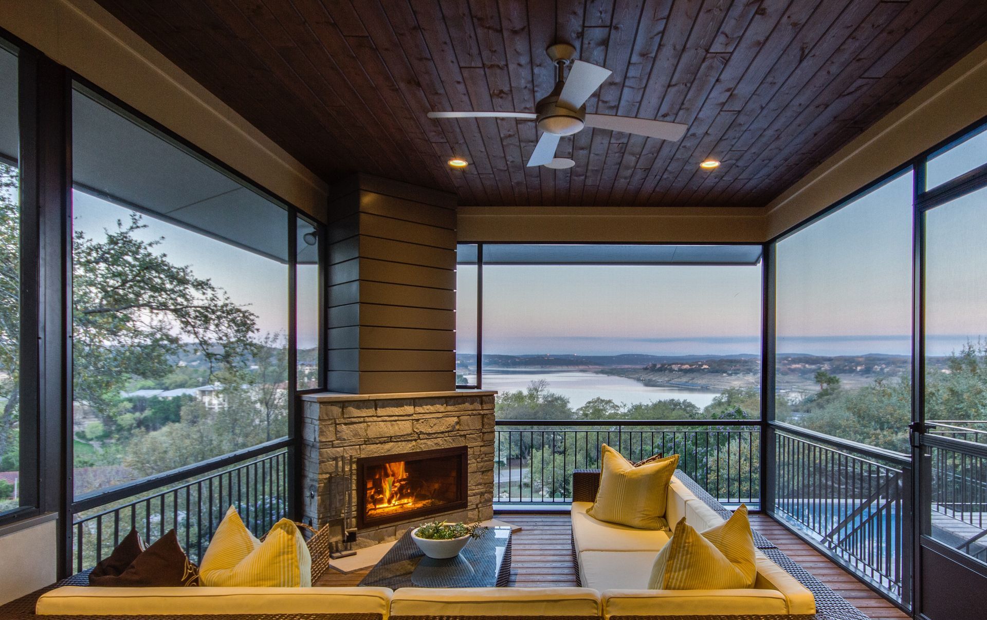 Located in Lakeway, this two story house owned by our clients needed some serious upgrading. After discussing the clients’ ideas we were able to come up with not only a beautiful, but functional energy saving design. Some of the key unique features include a screened-in porch with a wood burning fireplace and a view, large overhangs that double as a cover for the porch and patio, swimming pool with a hot tub, and tall windows to bring in natural lighting.